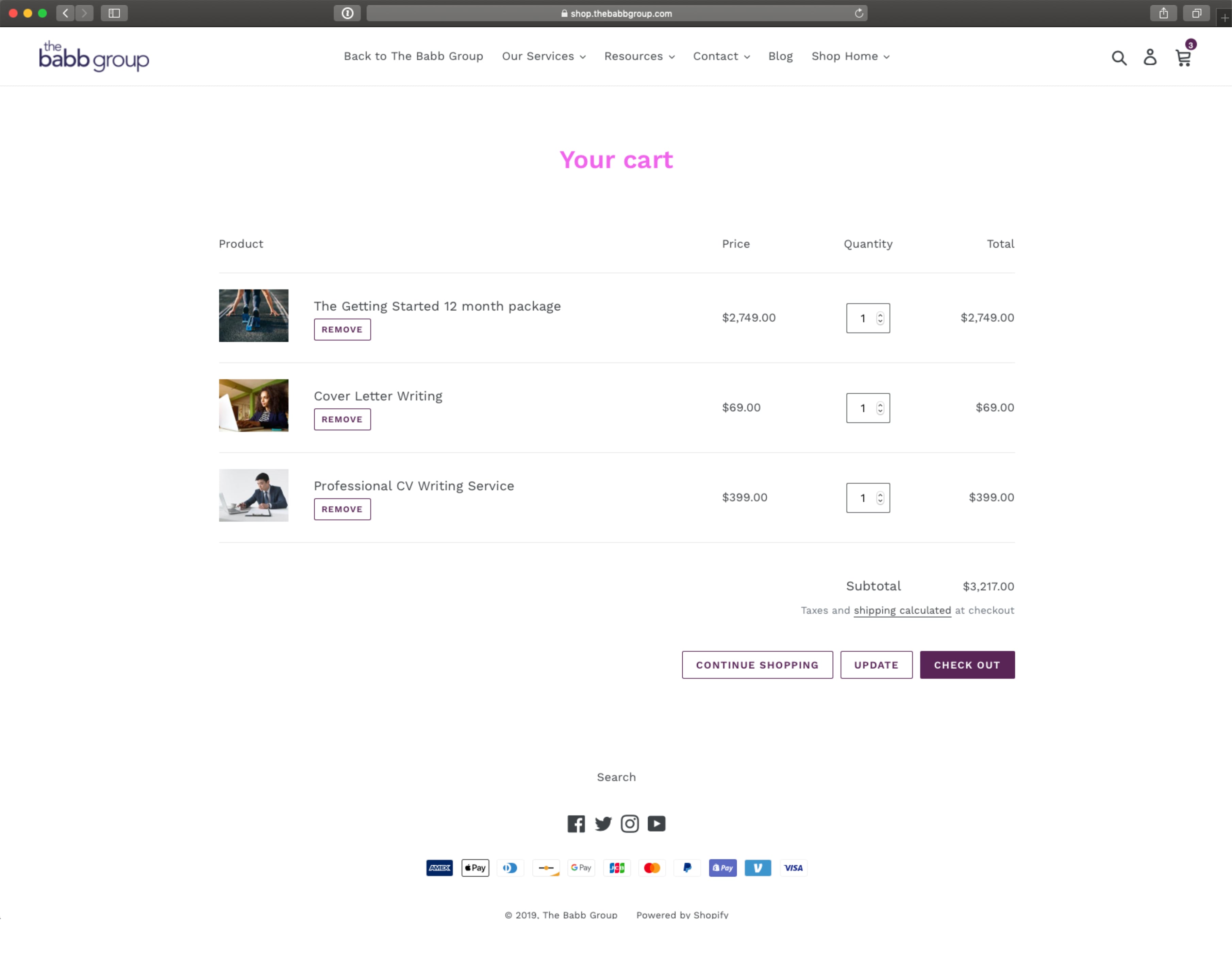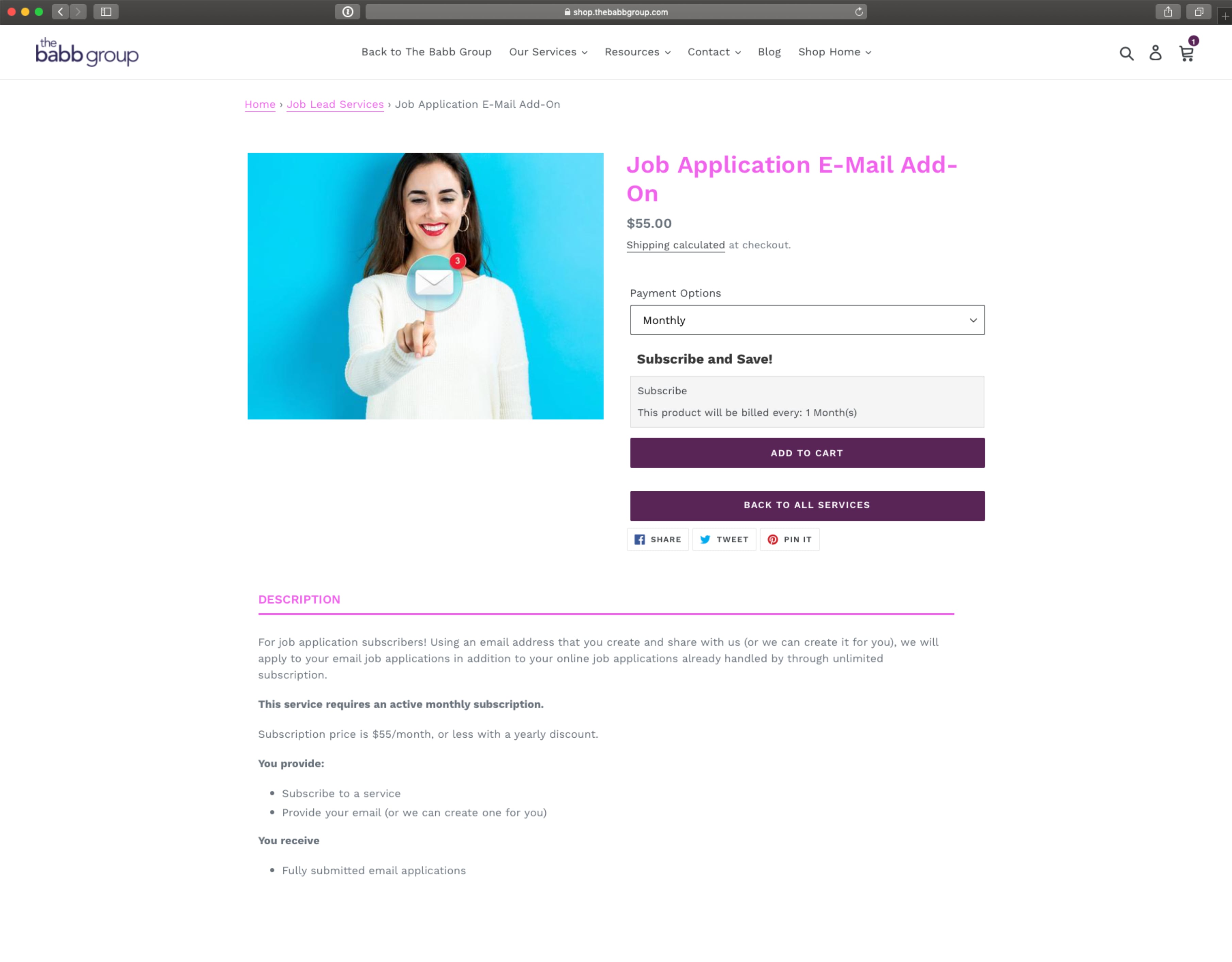 In the previous online store The Babb Group customers would browse the extensive products and services offerings and then by clicking a button they would pay for their purchase via PayPal. This method worked but there were some limitations in the system which prompted The Babb Group to seek a better solution. The main complaint with the PayPal system was the inability of customers to add both one time single item product purchases as well as ongoing subscription services and process them all at the same time in one buy. The PayPal system required purchasing each item one at a time and The Babb Group were losing opportunities for increased sales because of this.